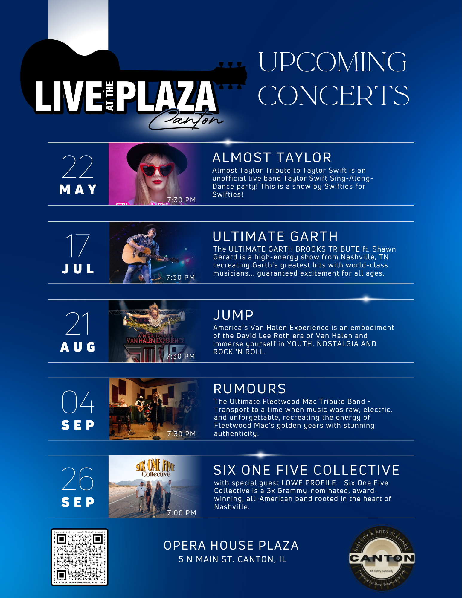 Live at the Plaza is Canton’s signature outdoor entertainment series, bringing the Opera House Plaza to life with live music, performances, and community events throughout the season. From local talent to regional acts, each event offers a lively, welcoming atmosphere where residents and visitors can gather, relax, and enjoy downtown. With a mix of entertainment for all ages, Live at the Plaza creates memorable experiences that celebrate community, culture, and connection in the heart of Canton.